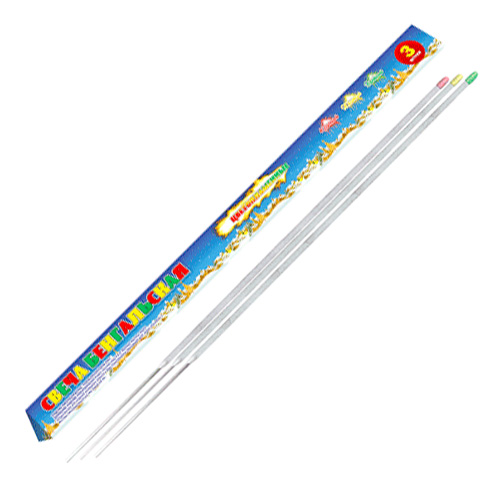 - Размерность - бенгальские огни выпускают в нескольких размерах. Общепринятого стандарта не существует, но наиболее распространены бенгальские огни длиной 150, 160 170, 200, 210, 300, 350, 400, 600 и 650 мм.
